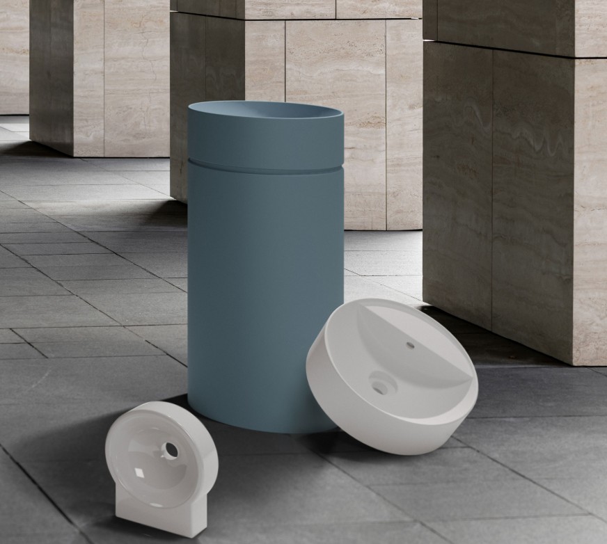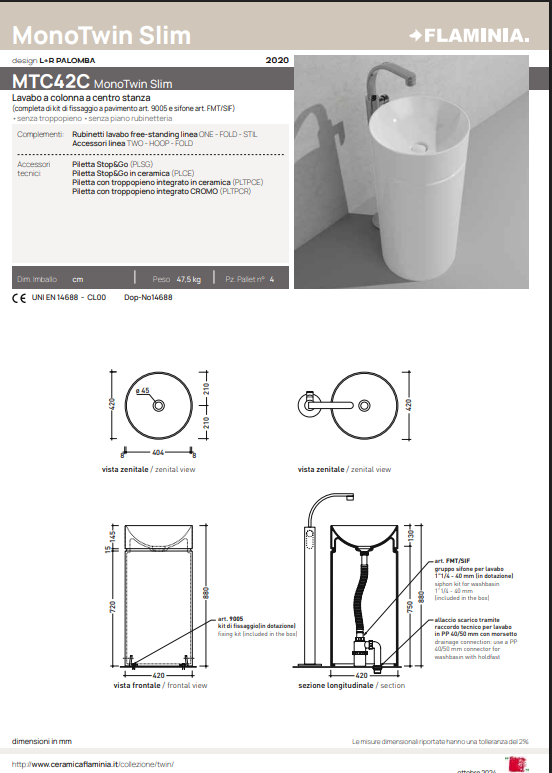 Met de vrijstaande Kolomwastafel Twin wastafelzuil heeft Flaminia een zeer fraaie wastafel ontworpen. De kolomwastafel wastafel is 90 cm hoog en heeft een diameter van 42 cm. De zuil is los van de wasbak en wordt ter plaatse gemonteerd. De kolomwastafel is er in glans wit, mat wit, fango en nog 7 andere kleuren verkrijgbaar.